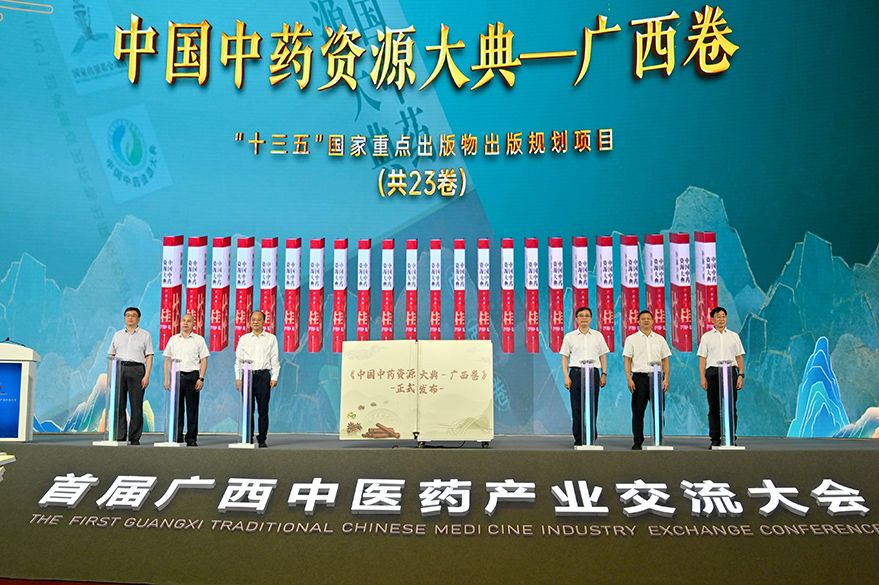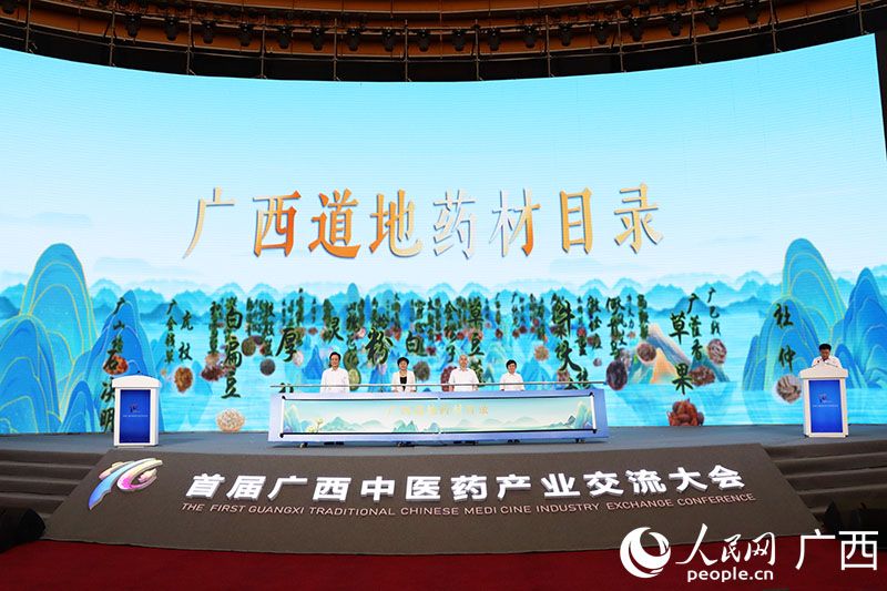 广西中医药产业交流大会开幕式上,《广西道地药材目录》发布。(图片来源:人民网)