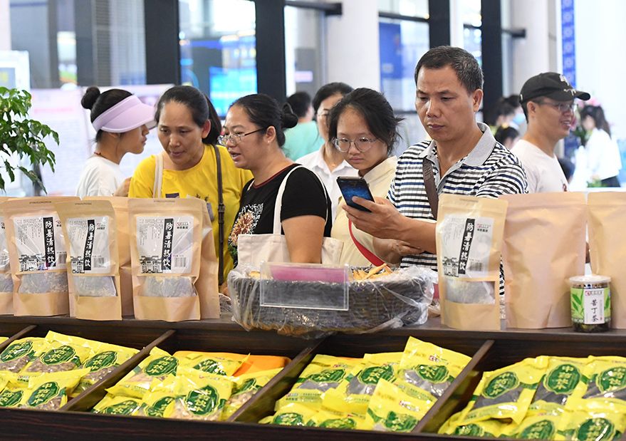 7月22日,在广西南宁国际会展中心,人们在中医药产业展览现场参观。(图片来源:新华社)