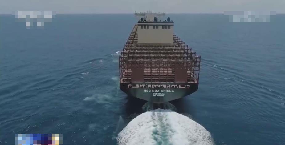 作为最新一代的大型集装箱船,该型船不仅绿色环保,而且节能高效,各项技术指标均达到了世界领先水平。(图片来源:中国央视新闻截图)
