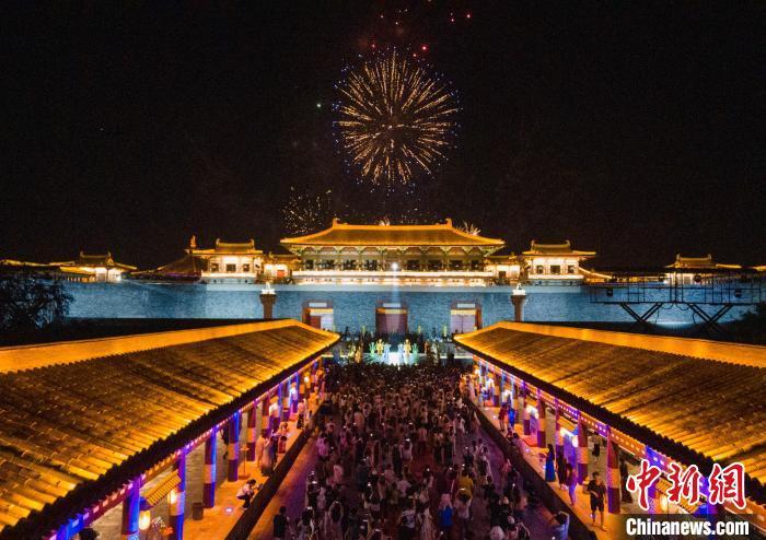 22日晚,一场别开生面的戏曲文化艺术节在湖北襄阳唐城影视基地举办。来自北京京剧院、武汉汉剧院、河南豫剧院、上海沪剧院等院团的名家名角,为线下游客及线上网友奉上一场精彩绝伦的戏曲盛宴。(图片来源:中新网)