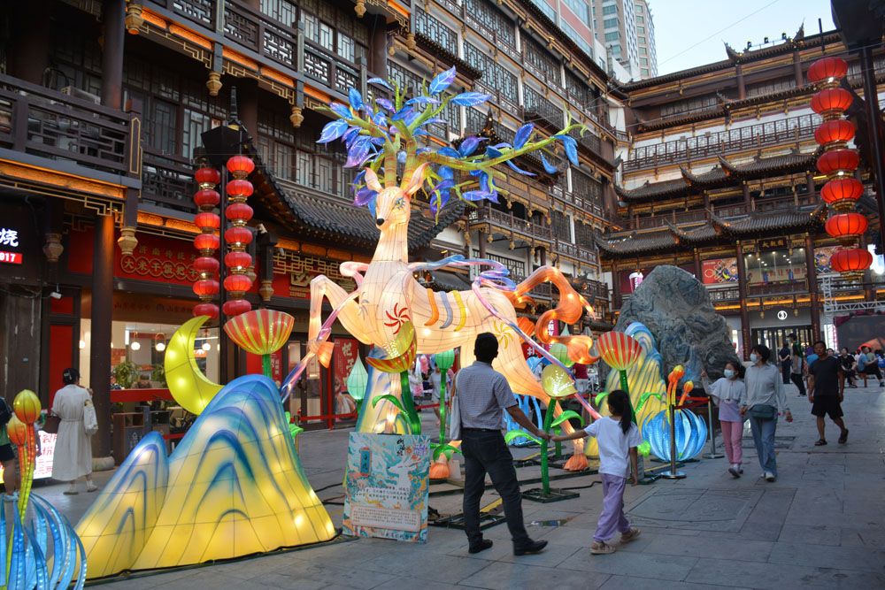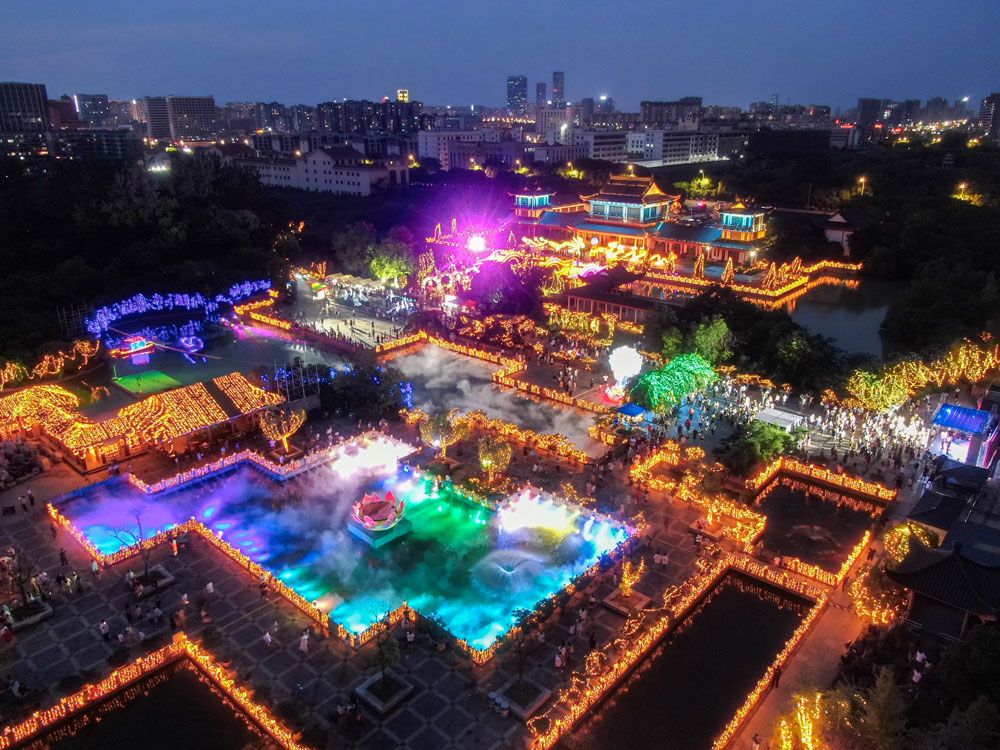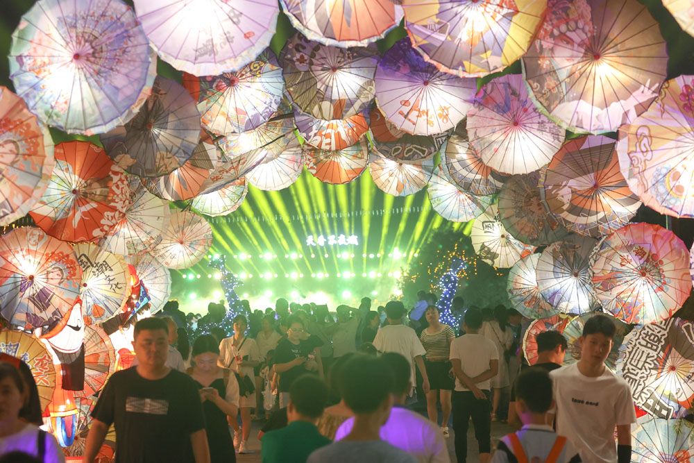 7月25日,江西南昌天香园灯火璀璨,不少游客漫步园中观光游玩。近日,南昌天香园开启暑期档“天香国潮不夜城”活动,吸引了不少市民游客前去游玩。(图片来源:本文图片除标注外均综编自中新社)
