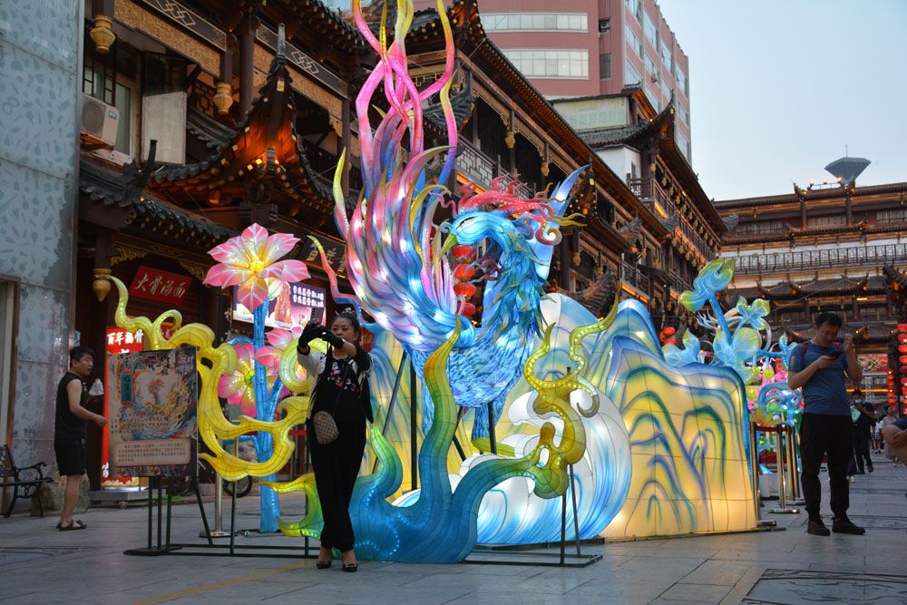 25日,山东济南夏季花灯会落户大观园,通过多种组合方式呈现出泉城特色的夏日景观,吸引众多市民观赏。