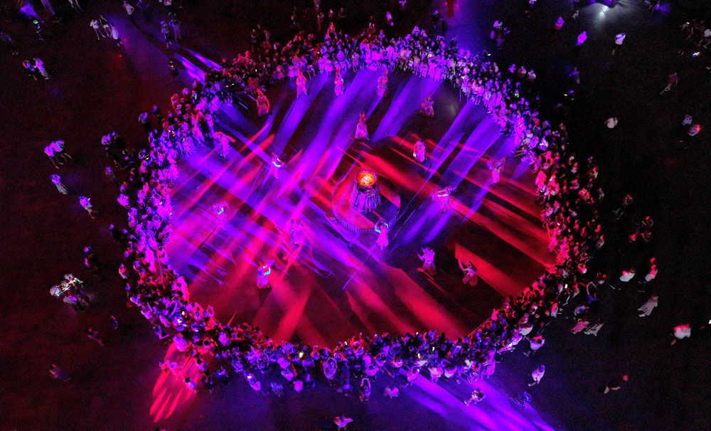 游客在陕西省汉中市留坝县县城内参加篝火晚会。(图片来源:新华社)
