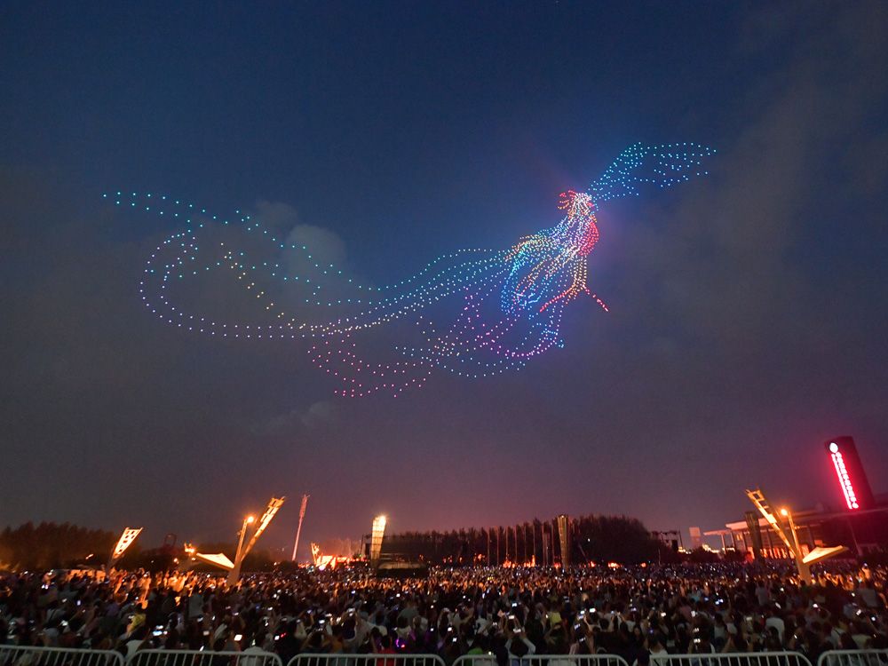 25日晚,在吉林长春,2023架无人机变换着组合造型,点亮夜空。当晚,作为2023年空军航空开放活动·长春航空展的活动之一,无人机集群表演在长春农博园举行。