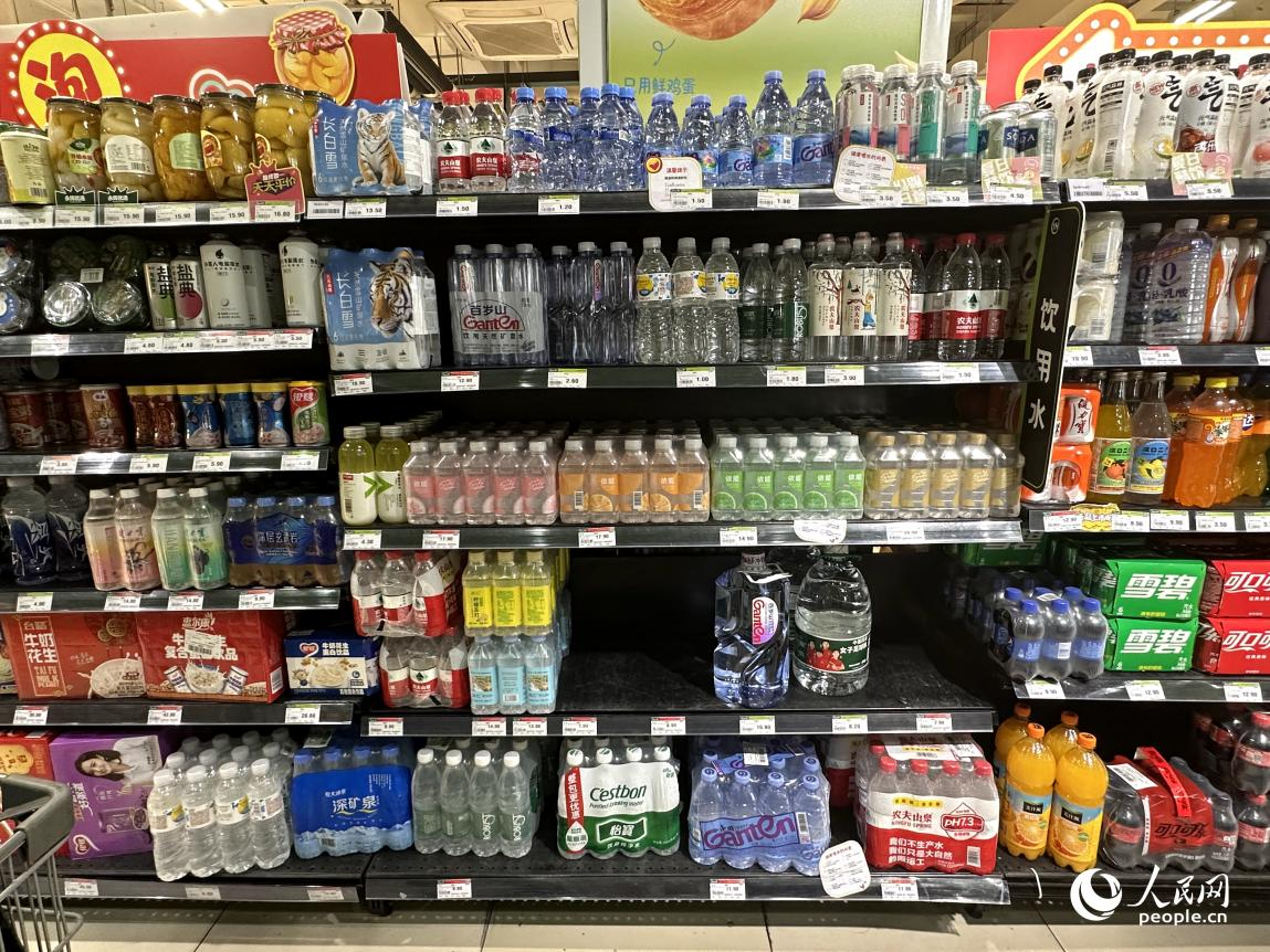 超强台风“杜苏芮”强势来袭,或将于28日在闽南沿海登陆。这两天,不少市民开始囤粮囤水。图为福州市鼓楼区的一家超市桶装水紧俏。(图片来源:人民网)