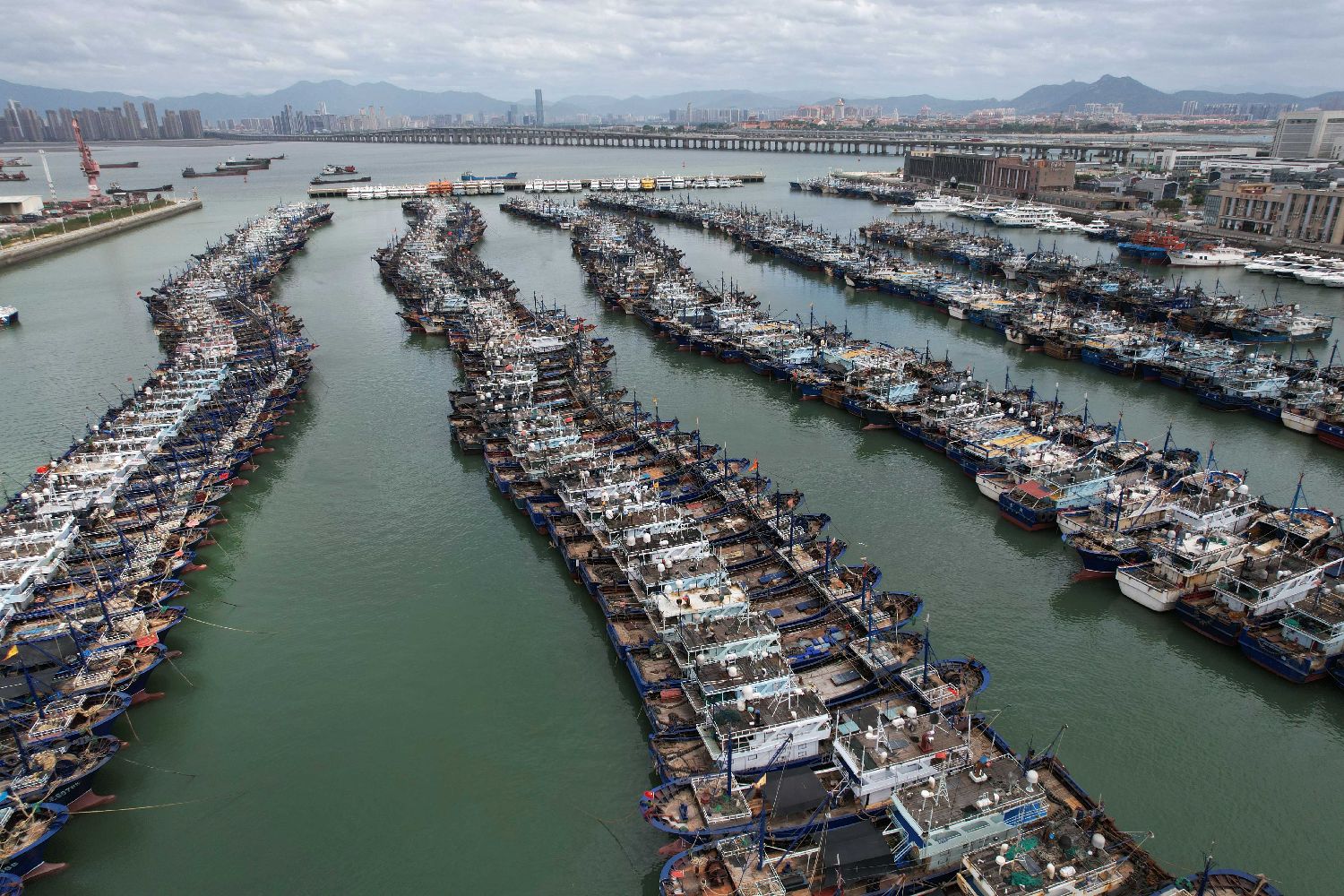 7月26日,连江县黄岐半岛的港湾里停满了各类船舶。当日12时前,福建全省海上渔船全部就近到港避风,船上人员全部撤离上岸;沿海养殖渔排相关人员全部撤离上岸。(图片来源:中新社)