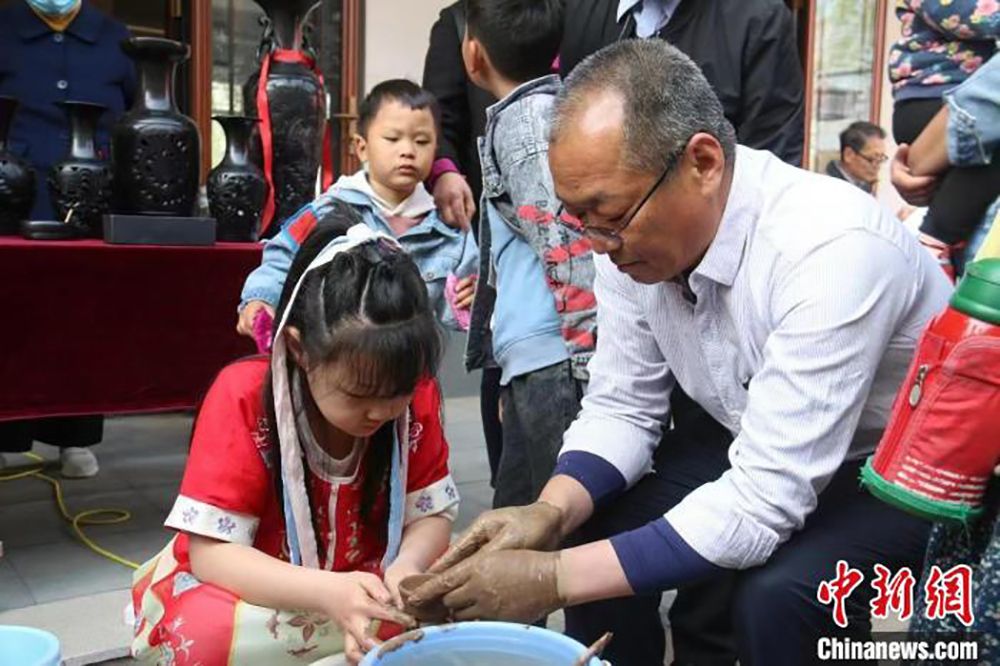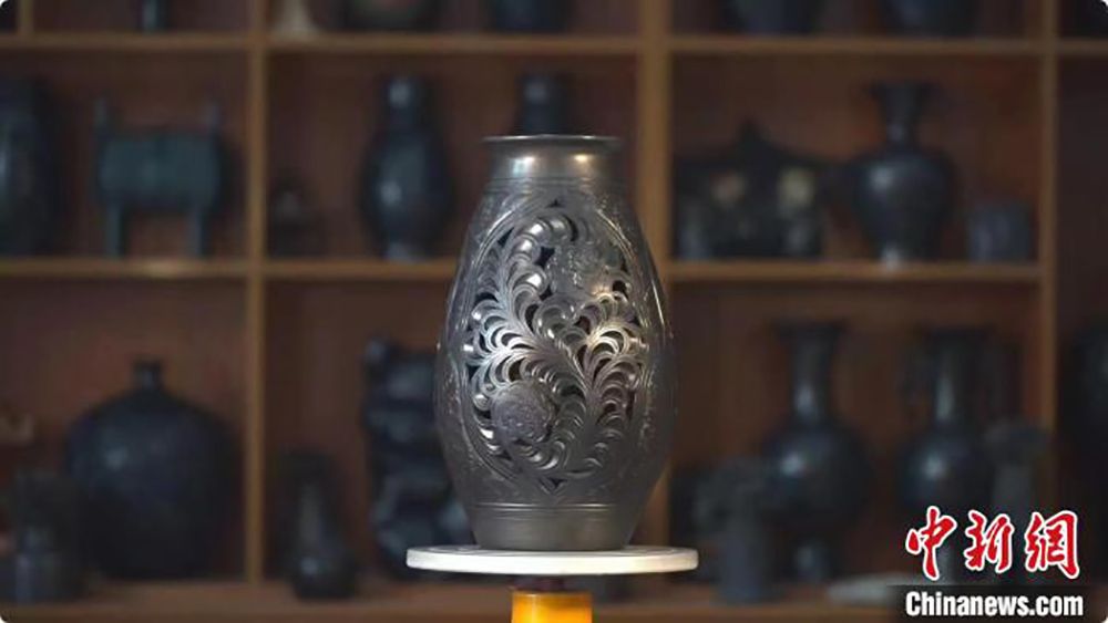 中新网报道,盛夏时节,走进山东省菏泽市成武县老黑陶瓷工作室,惟妙惟肖的小人儿、线条优美的笔筒、高雅大方的花瓶……数不尽的黑陶工艺品映入眼帘,品类繁多却不失精致,各有千秋。