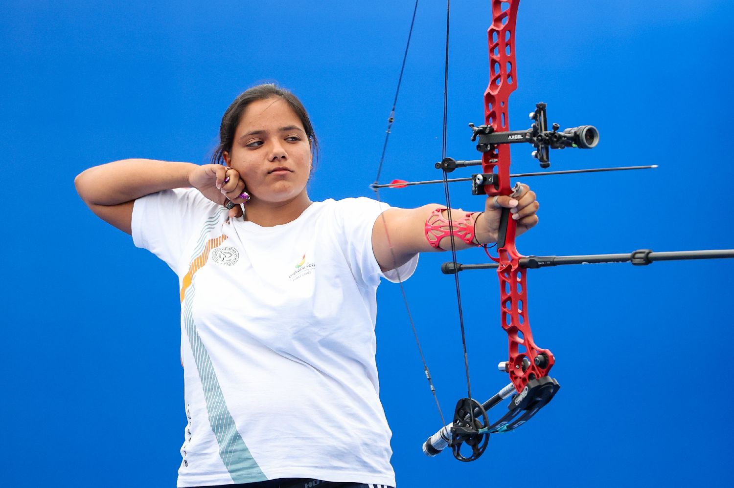 图为印度选手Avneet kaur在比赛中。当日,在成都举行的第31届世界大学生夏季运动会射箭女子复合弓个人决赛中,印度选手Avneet kaur获得金牌。(图片来源:中新社)