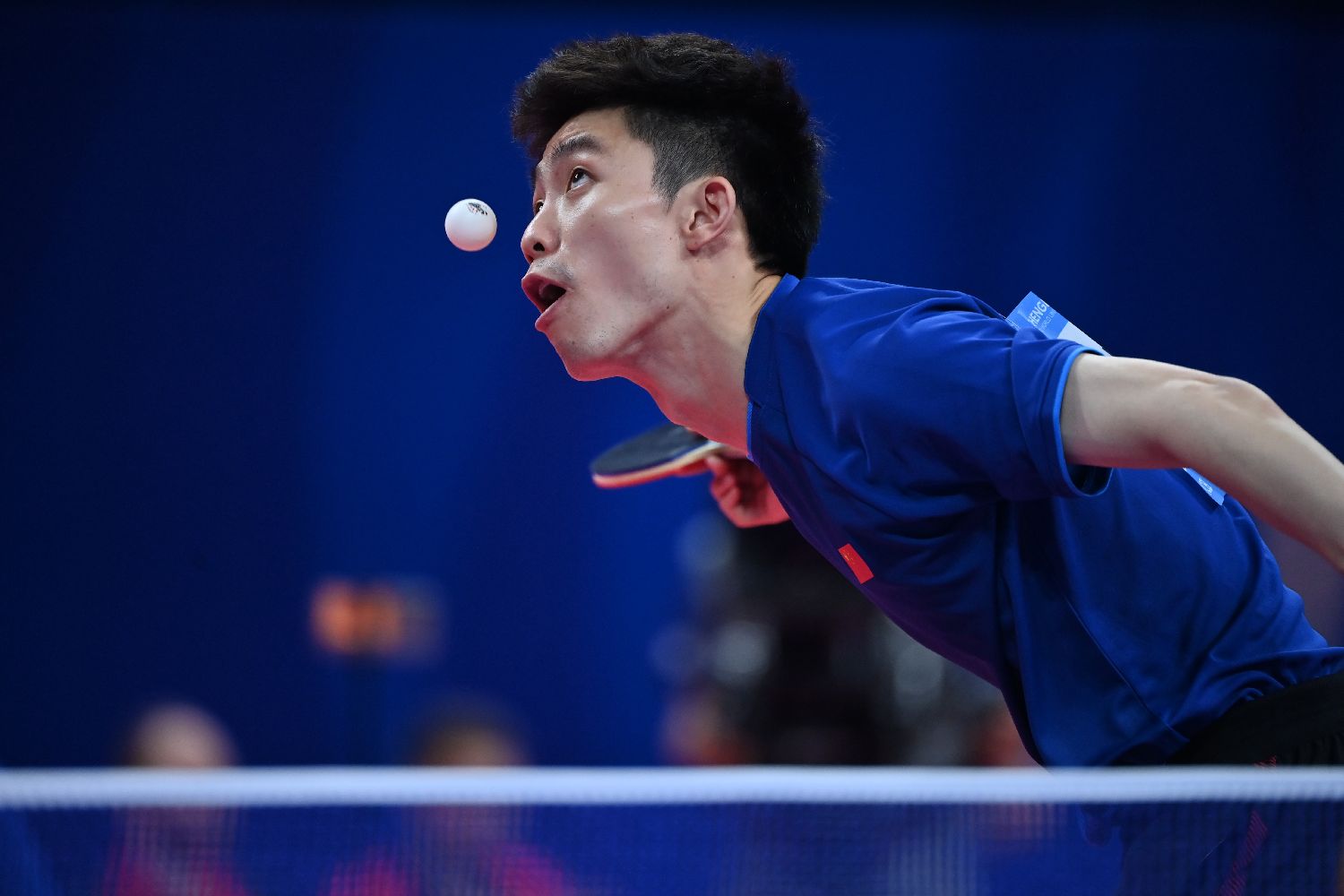 图为中国队选手周恺在比赛中发球,他以3比0战胜瑞士队选手阿尔德梅埃。当日,在成都举行的第31届世界大学生夏季运动会乒乓球比赛男子团体赛四分之一决赛中,中国队以3比0战胜瑞士队,晋级四强。(图片来源:新华社)