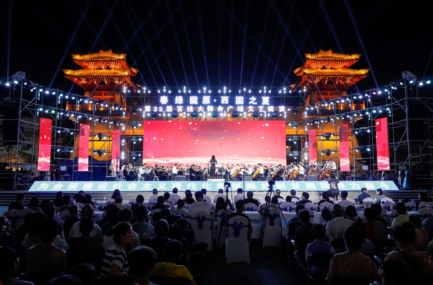 7月31日晚,甘肃省兰州市西固区第三十五届“春绿陇原·西固之夏”百姓大舞台广场文艺调演开幕。活动由政府牵头搭台,吸引了驻区企事业单位、艺术培训机构、民间文艺团队和文艺爱好者广泛参与,展现出陇原文化特点,丰富群众文艺生活。(图片来源:新华社)