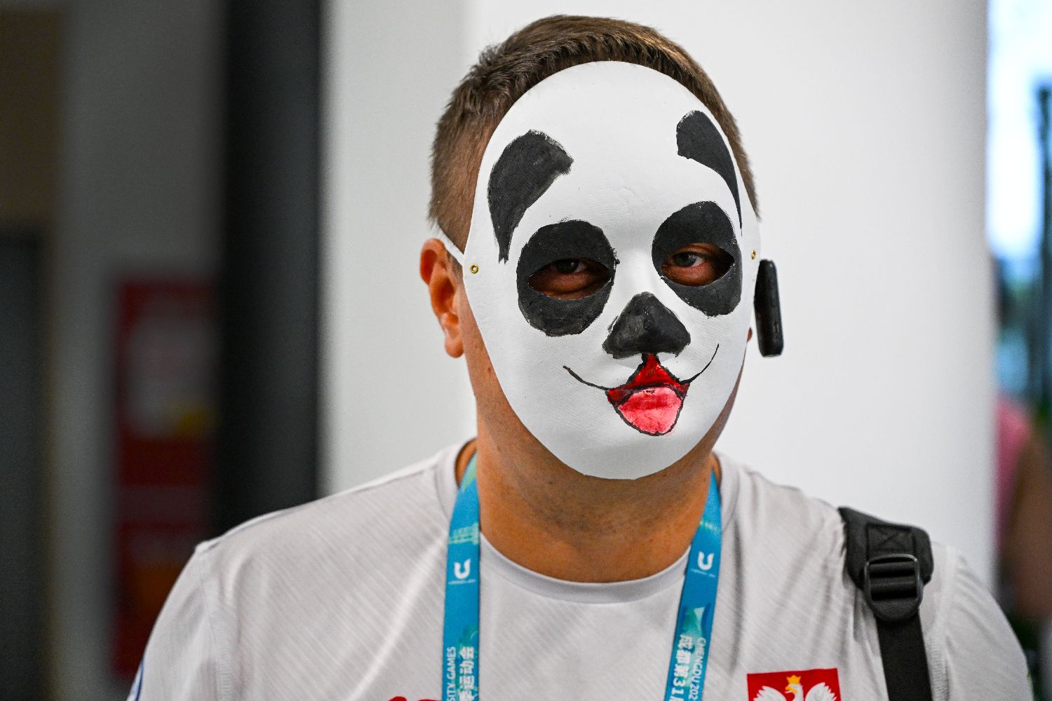 图为戴著大熊猫面具的波兰运动员。(图片来源:香港中通社)
