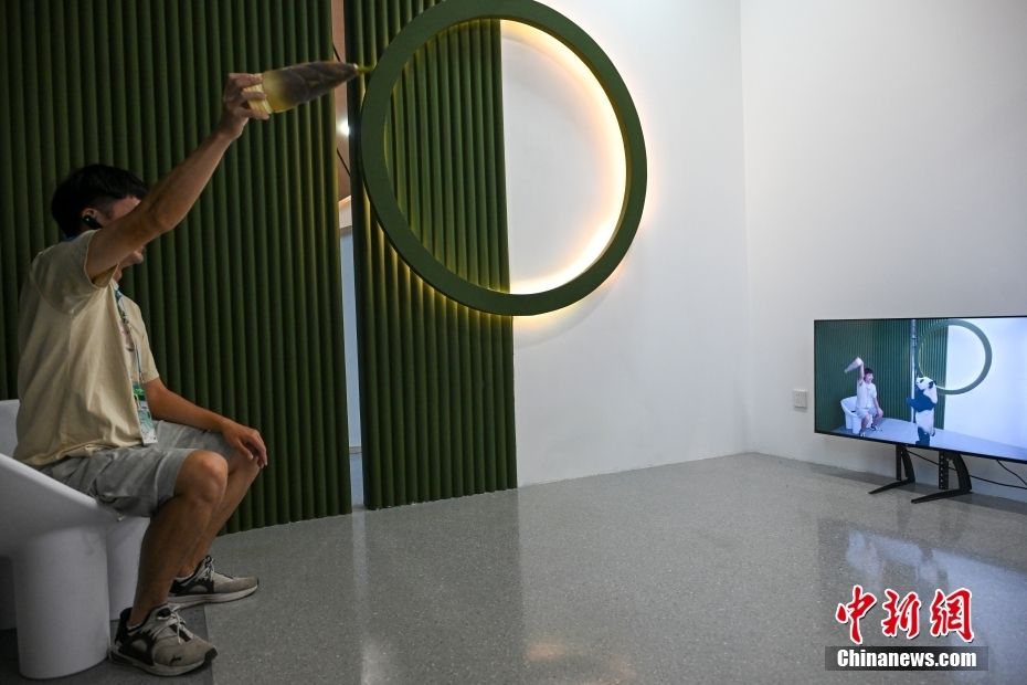图为参观者体验虚拟大熊猫互动项目。(图片来源:中新网)