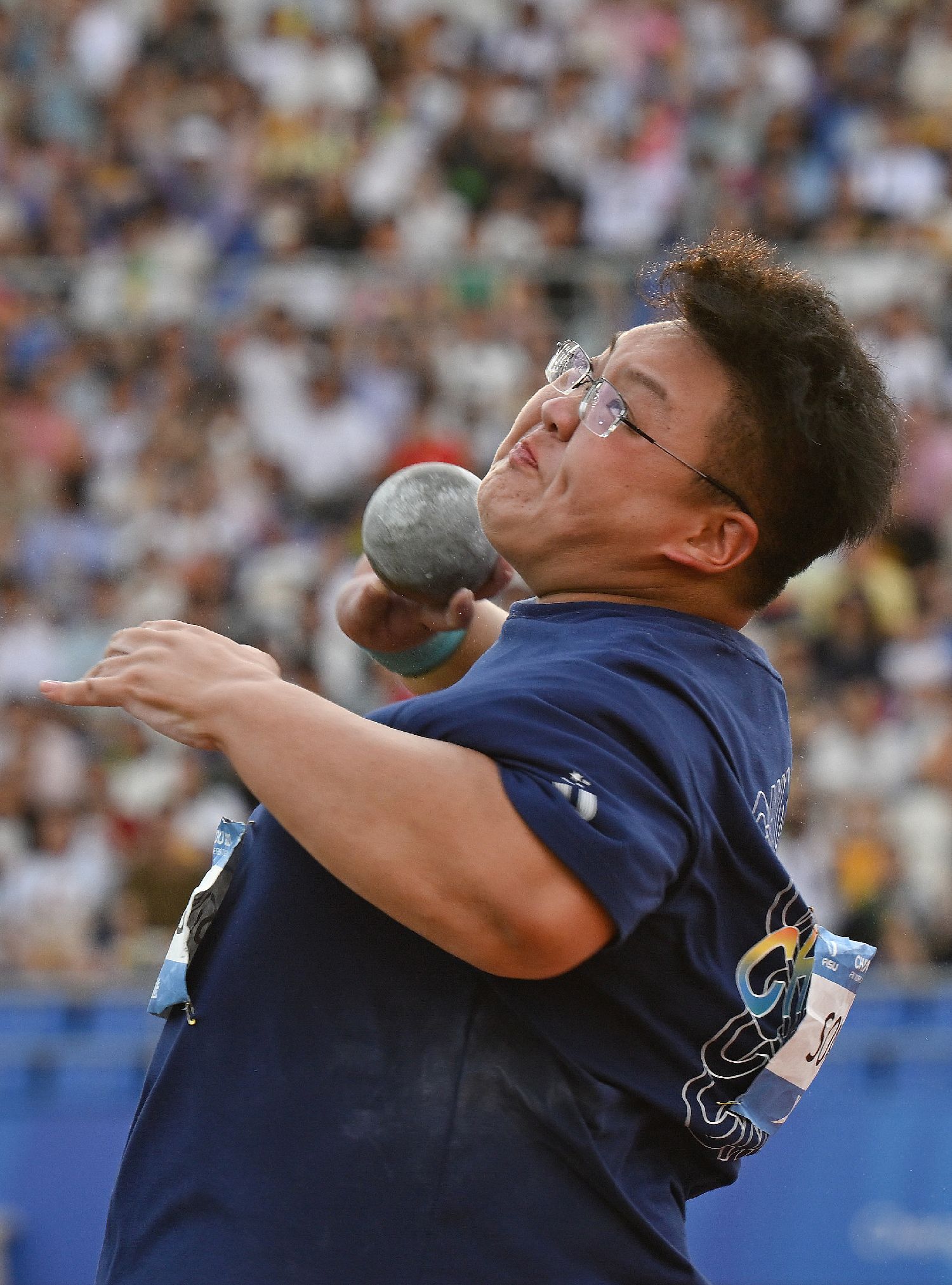 图为中国运动员宋佳媛在比赛中。当日,在成都举行的第31届世界大学生夏季运动会田径项目女子铅球决赛中,中国选手宋佳媛以18米56的成绩夺得冠军。(图片来源:新华社)