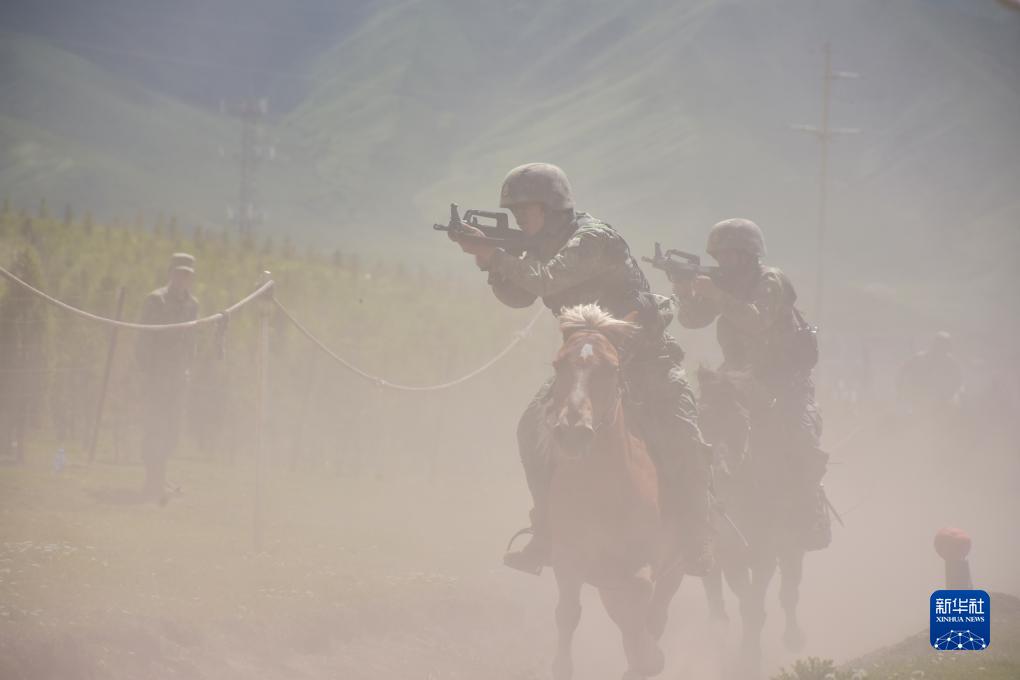 7月30日,驻守在青藏高原腹地的陆军第76集团军某骑兵连展开多项实战化课目训练。图为官兵们在乘马射击。(图片来源:新华网)