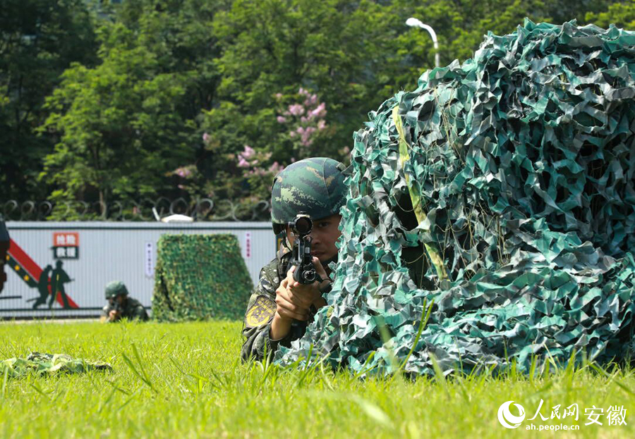 驻皖武警部队中正在训练的武警官兵。(图片来源:人民网)