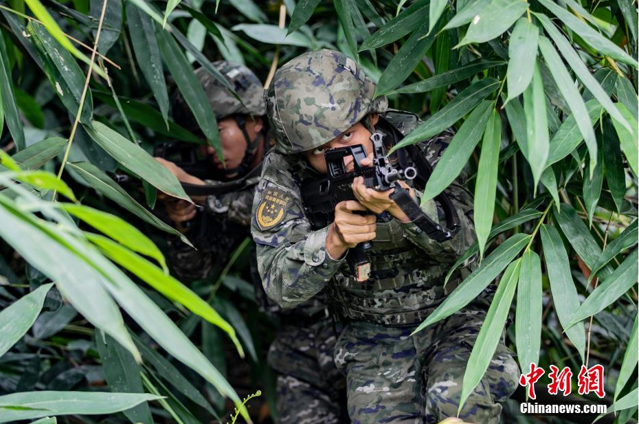 武警广西总队梧州支队通过构设实战环境与多课目连贯实施的方式,组织官兵在野外陌生地域开展武装追逃、山地攀登、综合体能等多项课目的训练,全面锤炼官兵在野外陌生条件下的协同战斗能力,为今后遂行多样化任务提供支撑。图为武警官兵在密林中隐蔽搜索目标。(图片来源:中新网)