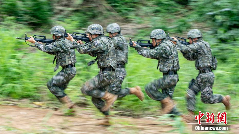 图为武警广西总队梧州支队官兵快速追击目标。(图片来源:中新网)