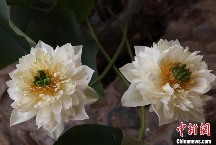 近日,内蒙古自治区赤峰市翁牛特旗的百亩大漠荷塘中盛开的荷花。(图片来源:北京央广网)
