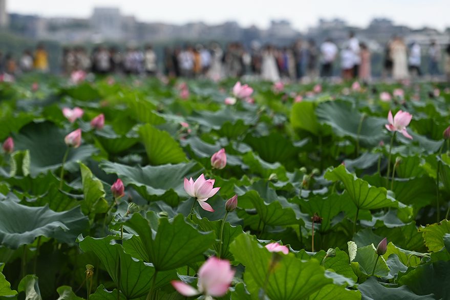 接天莲叶无穷碧,映日荷花别样红。又是一年赏荷季,中国各地荷花竞相绽放,仿佛一幅幅优美的荷塘画卷。微风吹来,花朵枝叶随之摇曳,阵阵幽香扑鼻而来驱散夏日的炎热,形成了夏日里一道亮丽独特的风景,吸引游客前来打卡拍照。