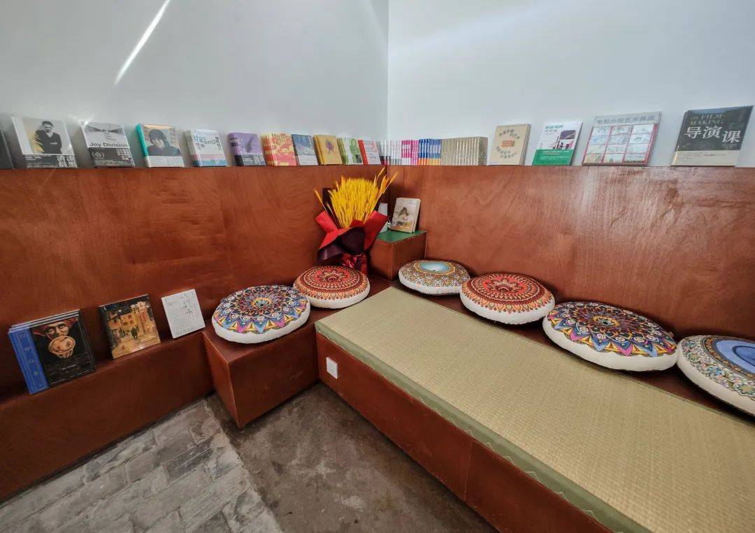 据悉,这里还有适合远眺的露台、可以观影的放映室、安心做讨论沙龙的田野场。图为店内为举办活动做的布景展示。(图片来源:北京东城微信公众号)