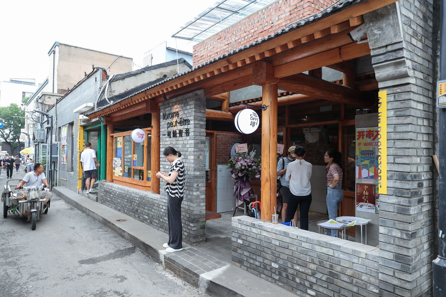 “可能有书”共占地260平方米,由一处腾退的共生院空间打造而成。这里不仅有书店、画廊、咖啡馆,还将包子铺与自习室拼贴在一起,充满意趣。图为当日拍摄的店面外观。(图片来源:中新社)