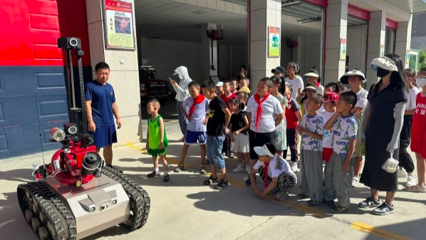 7月24日,新疆库尔勒市康都街道时代社区新时代文明实践站组织辖区学生前往索克巴格路消防救援站进行参观。