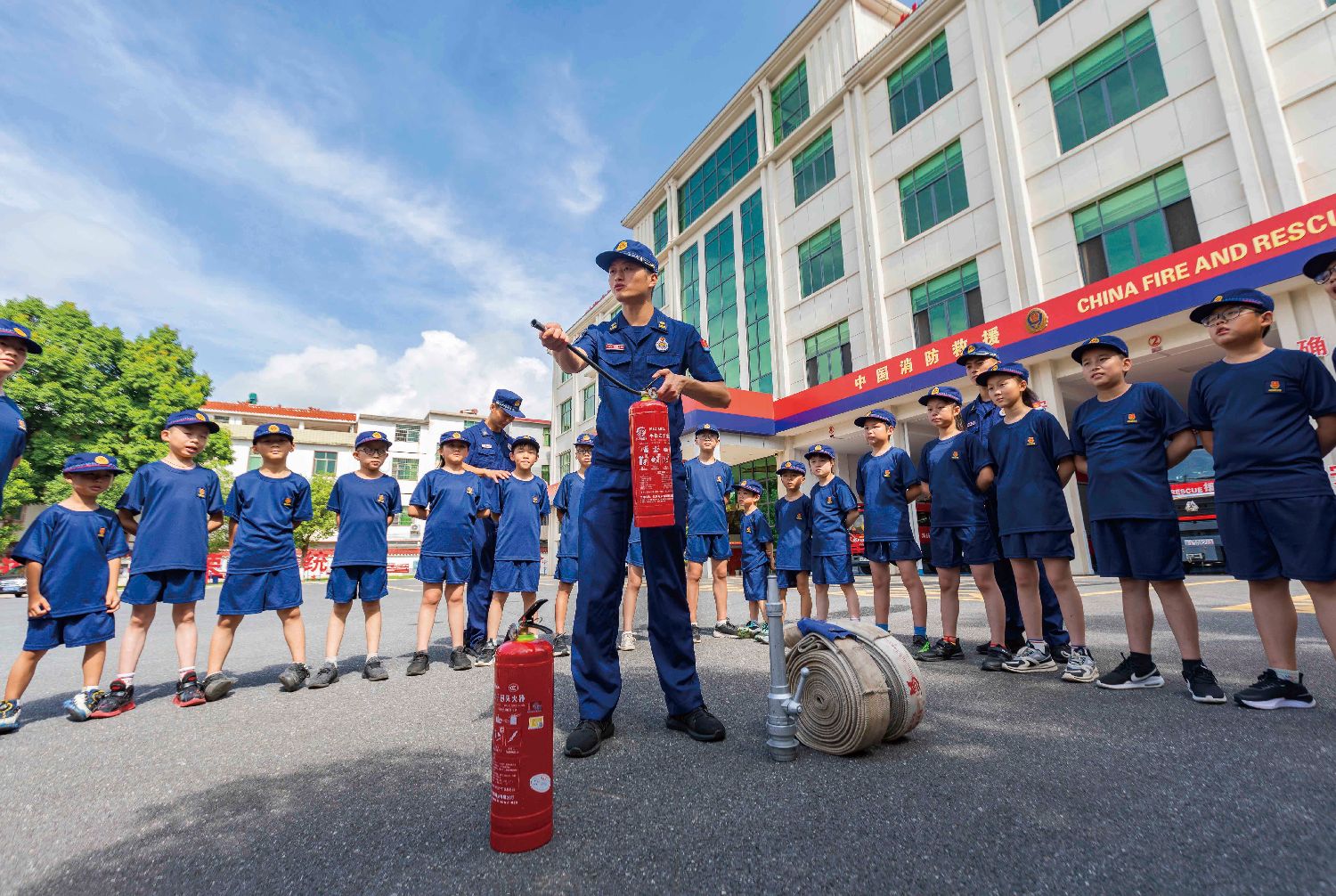 为开展丰富多样的社会消防安全实践活动,进一步加强学生消防安全教育,暑假期间,中国各地开设“安全公益课堂”,通过安全常识讲座、体验消防装备和模拟火场逃生演练等形式,向孩子们普及消防安全知识,增强自我保护能力。