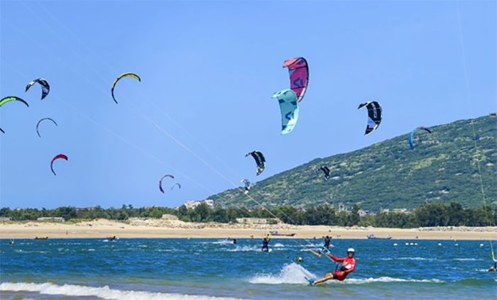 这里还是运动爱好者的胜地——2023年亚洲沙滩排球锦标赛在平潭沙滩运动基地打响,来自亚洲各国的58支队伍展开争夺;壳牌喜力国际汽联F4方程式、China GT中国超级跑车锦标赛等高水平赛车赛事齐聚平潭如意湖国际赛道;风筝冲浪国际巡回赛等风筝国际赛事接续举办,这些都为平潭国际旅游岛注入了新的运动基因,使平潭以独树一帜的感受和特质打出自己的滨海旅游品牌。图为平潭国际旅游岛风帆运动基地风筝冲浪表演。