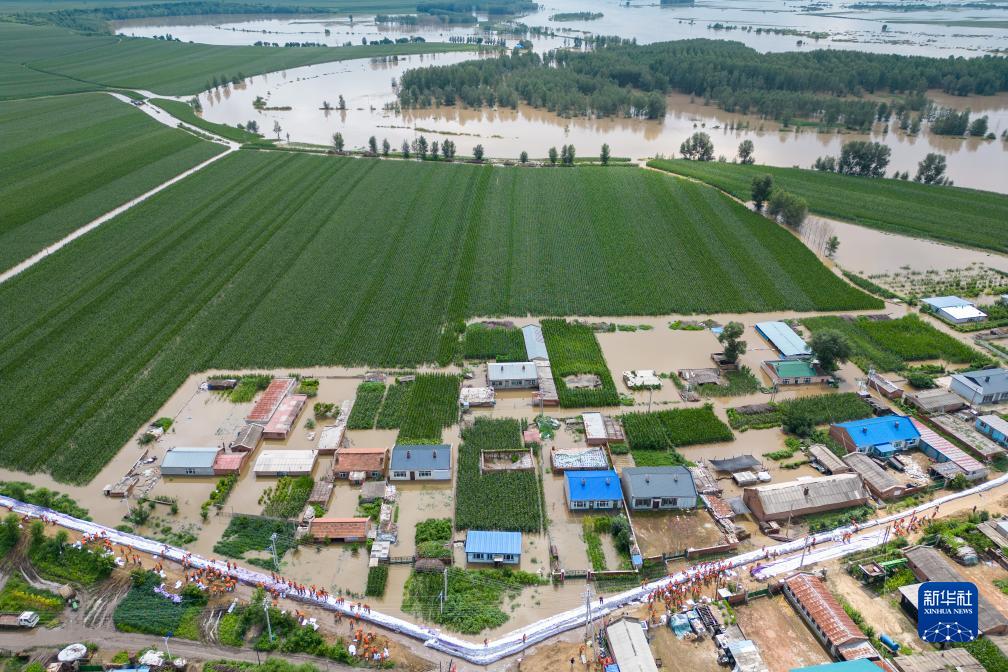 8月9日,黑龙江省哈尔滨市双城区万隆乡增产村多口店屯,多户房屋及玉米地被淹。据悉,目前村内400余名村民已妥善转移,多方力量支援在村内筑起2公里左右的沙堤防汛。据黑龙江省水文水资源中心发布消息,截至8月9日8时,黑龙江省松花江、拉林河、穆棱河等8条河流超警戒水位。图为村民志愿者运送沙土加固沙堤。(图片来源:中新网)