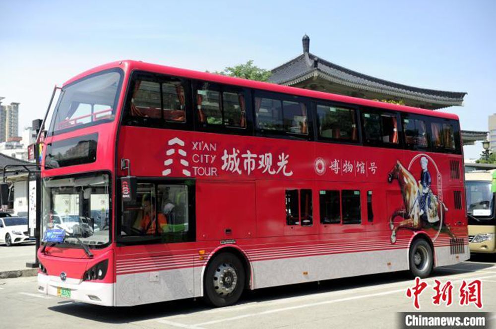6月,西安城市观光车“博物馆号”载游客启程。(图片来源:中新网)