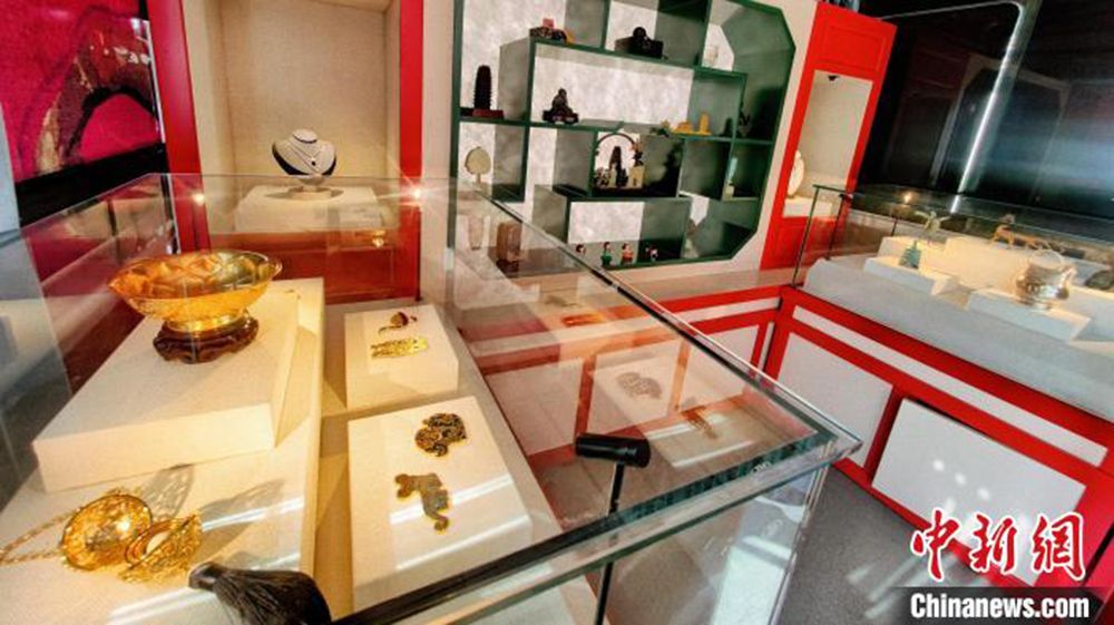 5月,图为“博物馆号”上陈列的文物复制品及文创产品。(图片来源:中新网 受访者供图)