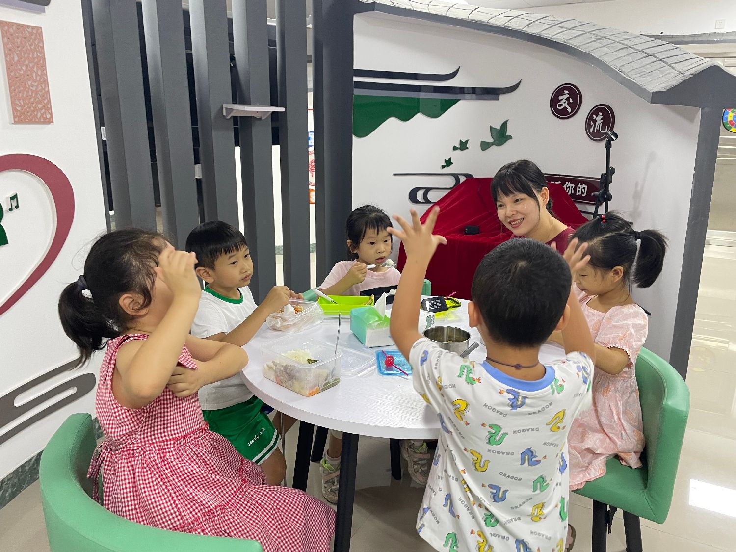 图为孩子们在广西柳州市一社区开办的暑期托管班吃午饭。中新社记者 林馨 摄