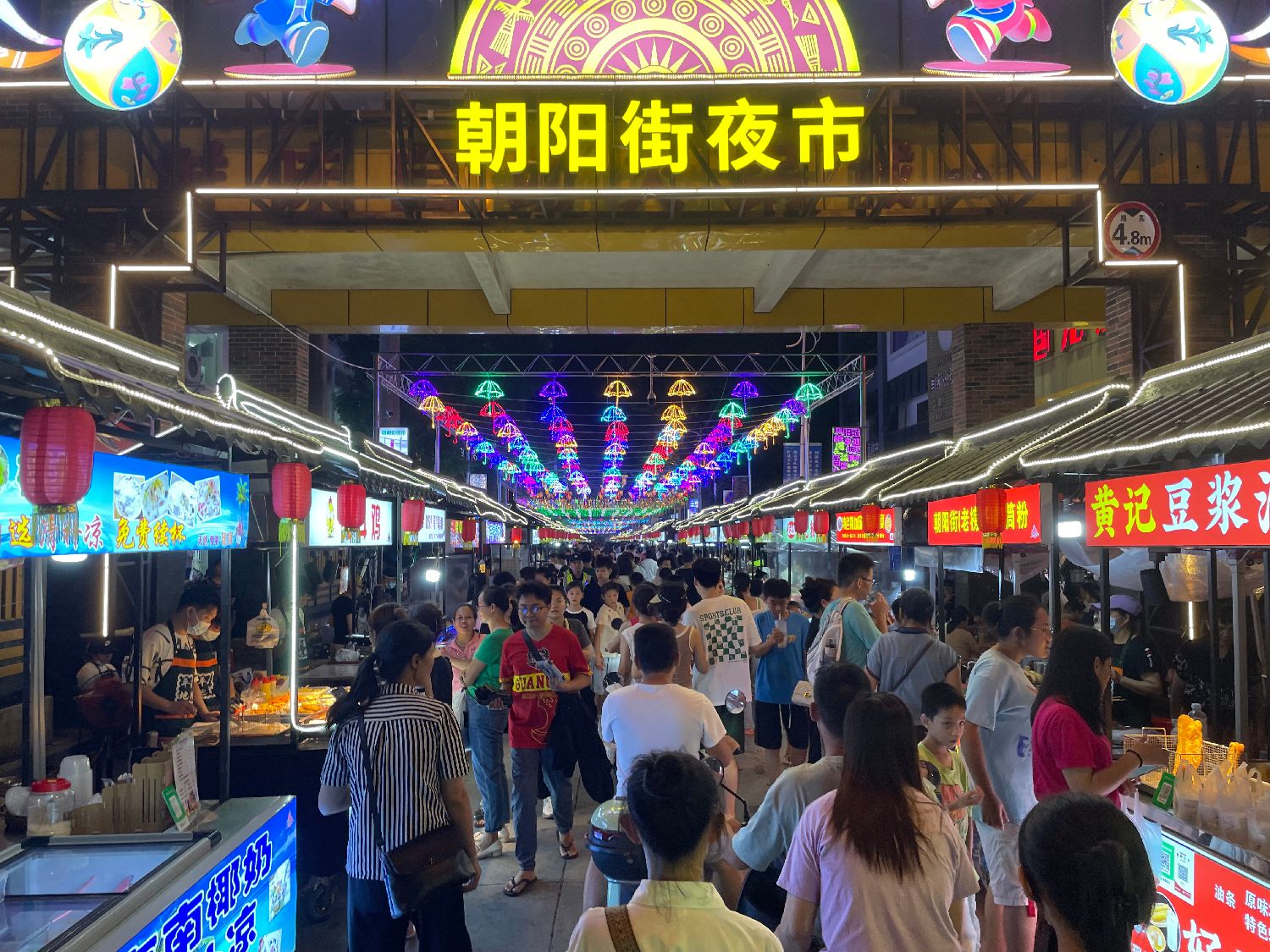 走进当地为迎合球市发展打造的朝阳街夜市,行人摩肩接踵,美食花样百出,烟火气旺盛。“生意不错,一天能卖两三百碗凉皮。”在朝阳街做生意的刘兆庆说。