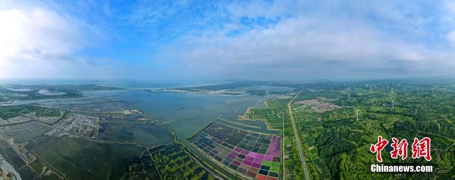 2023年8月11日,山东省荣成市港西镇沿海,盐田风景迷人。(图片来源:中新社)