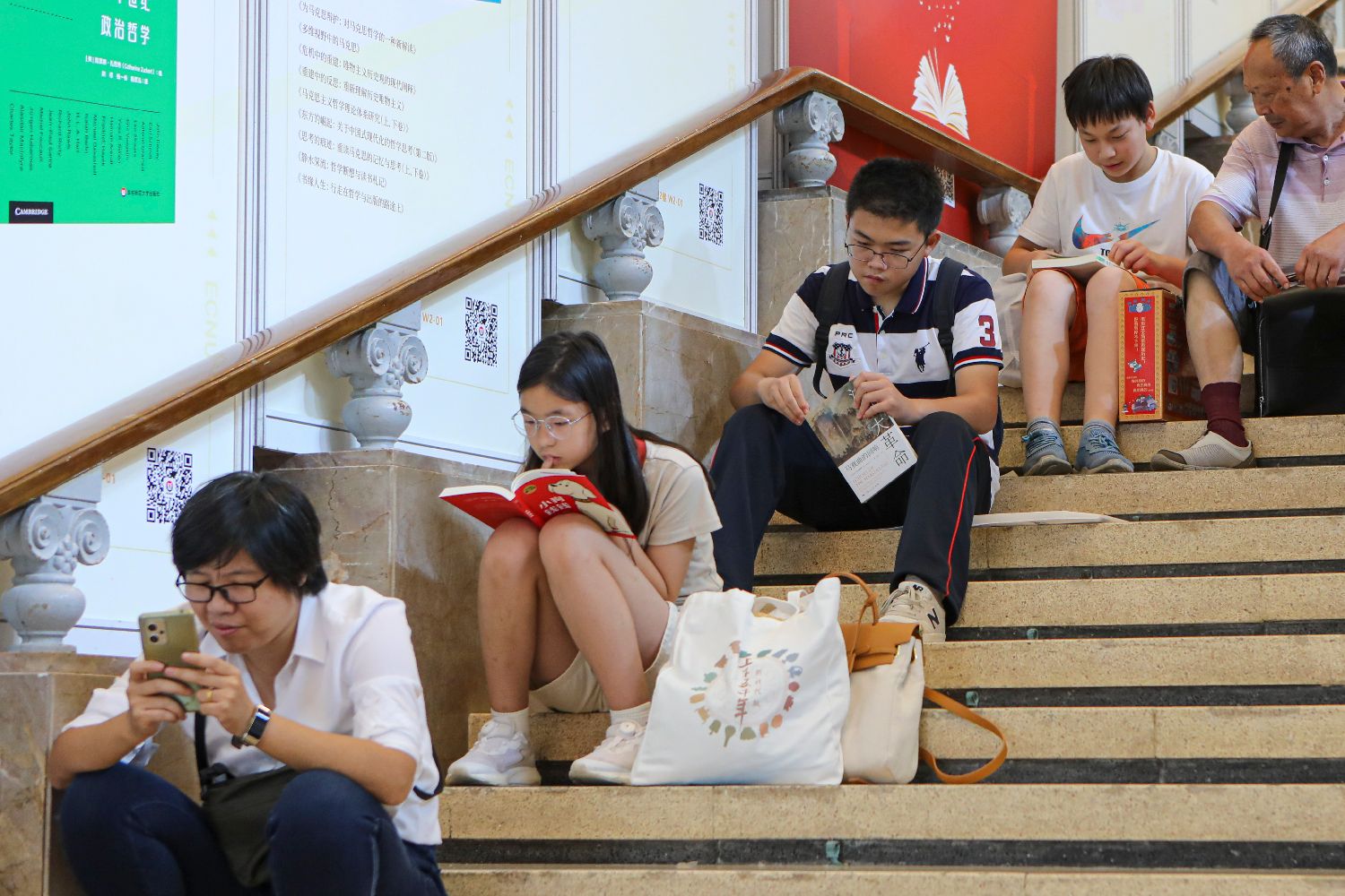 8月16日,读者在2023上海书展现场阅读。(图片来源:新华社)