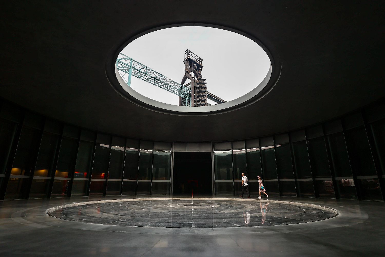 8月17日,北京首钢园,民众参观秀池地下展厅。(图片来源:中新社)