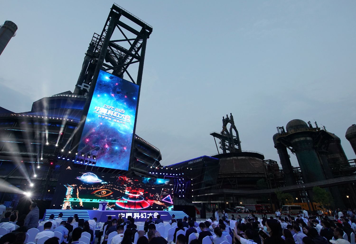 在北京首钢园拍摄的2023中国科幻大会开幕式现场。(图片来源:新华社)