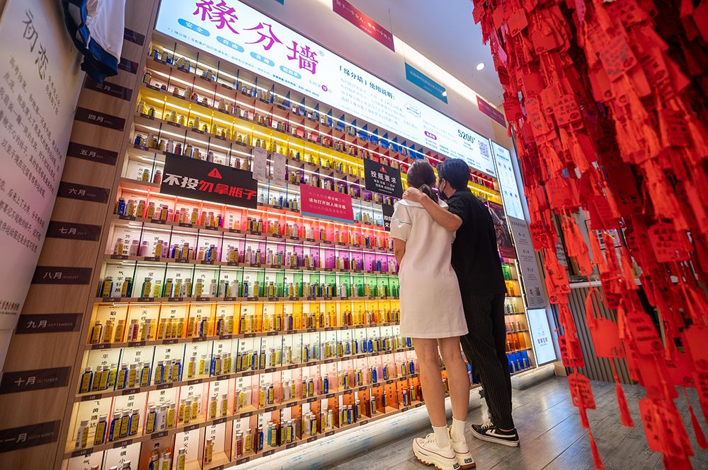 山西省太原市,一对情侣在恋爱博物馆参观。该博物馆设置了脱单、初恋、结婚、相守等主题展区,收集了上千对有情人的爱情故事,吸引年轻情侣参观。 (图片来源:中新社)