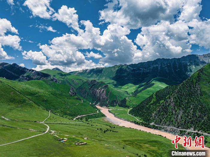 青海省玉树藏族自治州杂多县昂赛乡是三江源国家公园澜沧江源园区的核心区域,昂赛乡70%的辖区面积是高山草场和山间林地,更是国家一级保护动物雪豹的重要栖息地之一,被誉为雪豹之乡。图为昂赛大峡谷风光。