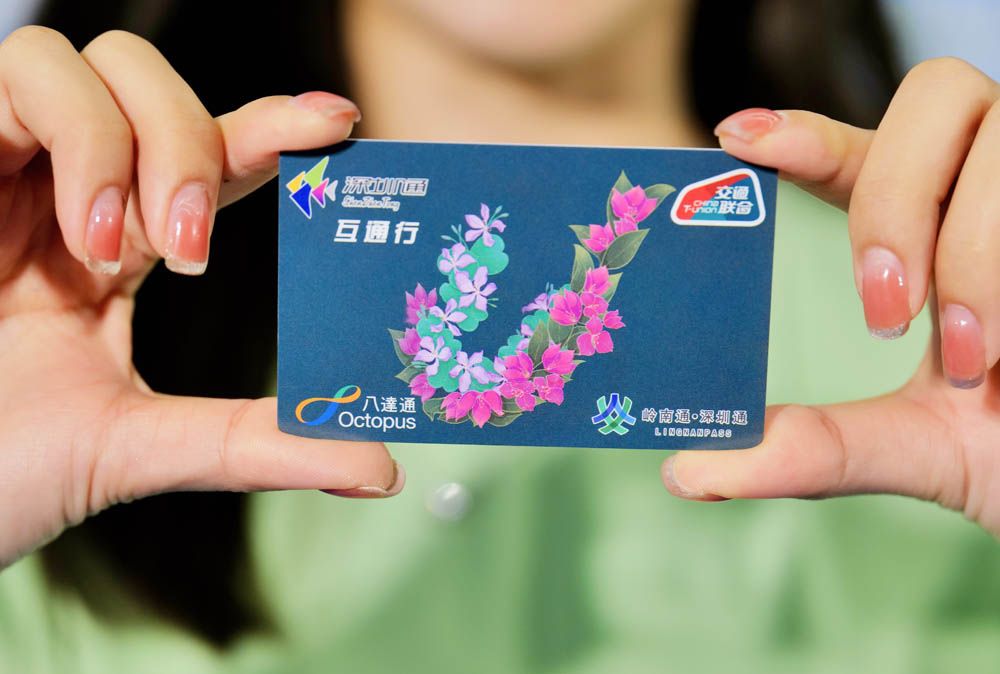 深港互通行卡是深圳市深圳通有限公司和八达通卡有限公司联合发行非接触式智能IC卡,卡上具有深圳通电子钱包(符合交通运输部全国交通一卡通标准)和八达通电子钱包,分别使用人民币和港币充值,可在香港及全国交通一卡通互联互通327个城市使用。(图片来源:中新社)