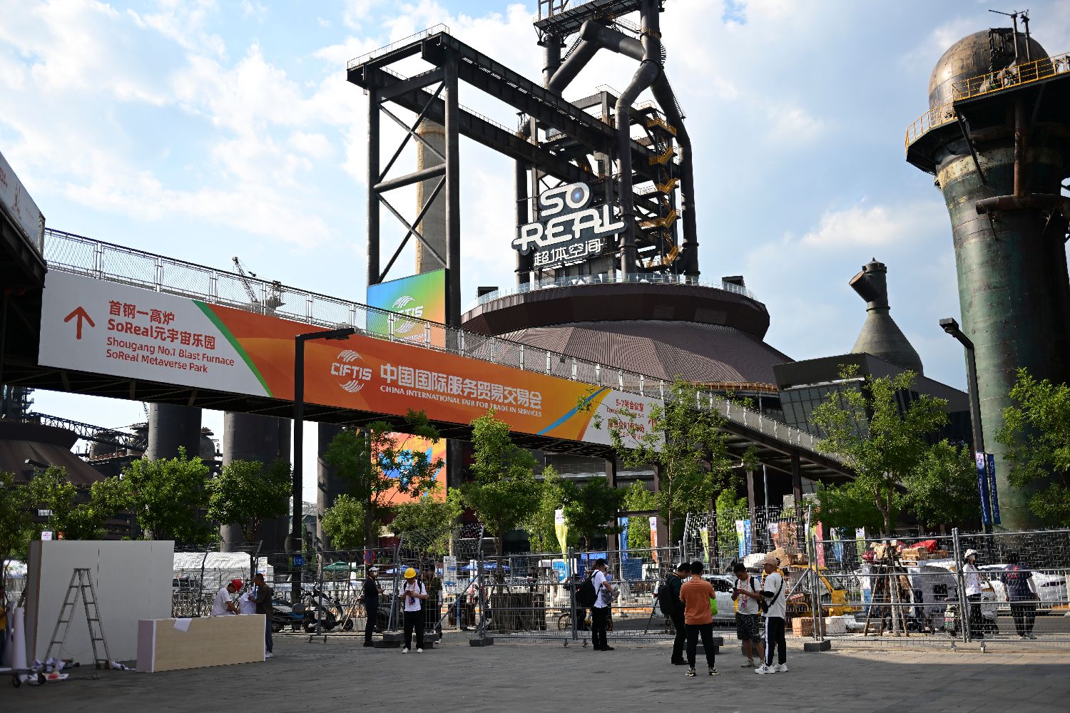 8月31日,媒体记者探营北京首钢园展区。据悉,2023年中国国际服务贸易交易会(服贸会)将于9月2日至6日在中国国家会议中心和首钢园区举办。