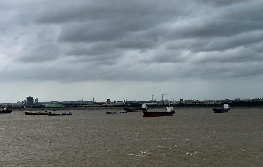 9月4日,受台风“海葵”影响,福建省泉州湾上空乌云密布。