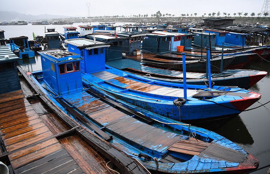 这是9月5日在广东省潮州市饶平县三百门港拍摄的避风渔船。(图片来源:新华社)