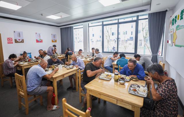 8月23日,在湖州市吴兴区东林镇东华村居家养老服务中心,老人们在老年食堂就餐。近年来,浙江省湖州市吴兴区东林镇积极提升完善乡村养老服务体系,为东林镇辖区内60周岁以上的老年人提供日间照料、医疗保健、文化娱乐、健身休闲、心理抚慰等多项专业服务,全面提升乡村居家养老服务水平。(图片来源:新华社)