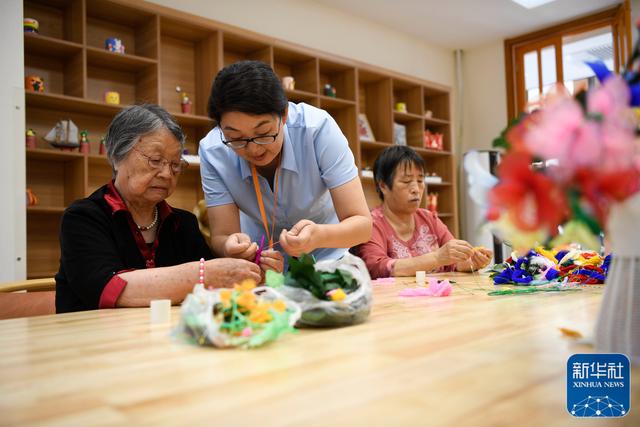 8月27日,在河北省承德市双滦区一家养老服务中心,老人在工作人员指导下制作手工。目前,双滦区已建立各类养老服务体41家,惠及全区1.5万余名老年人。(图片来源:新华社)