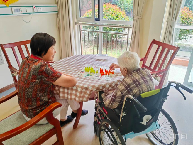 近日,山东济南养老服务中心,老人在养老服务中心里下棋。(图片来源:北京央广网)