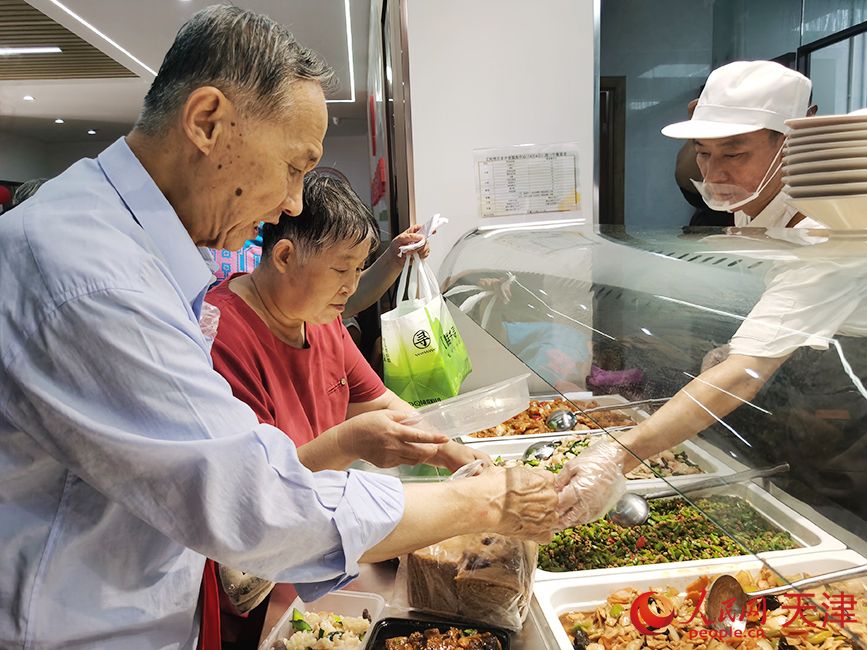 9月4日,天津市河西区友谊路街文苑楼居家养老服务中心正式开业投入运营。老人在文苑楼居家养老服务中心选购餐食。(图片来源:人民网)