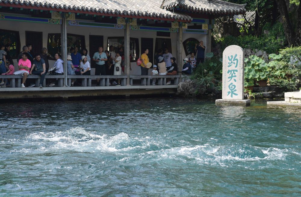 9月6日, 游客观赏济南趵突泉“水涌若轮”景观。(图片来源:中新社)