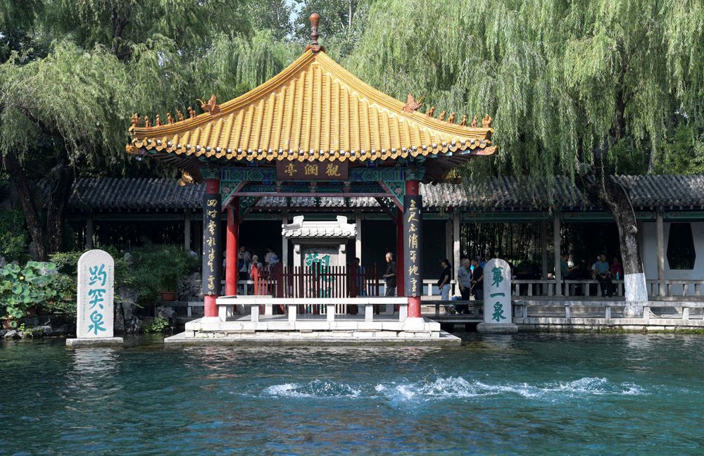 9月6日,游客在济南趵突泉公园内参观。(图片来源:新华社)