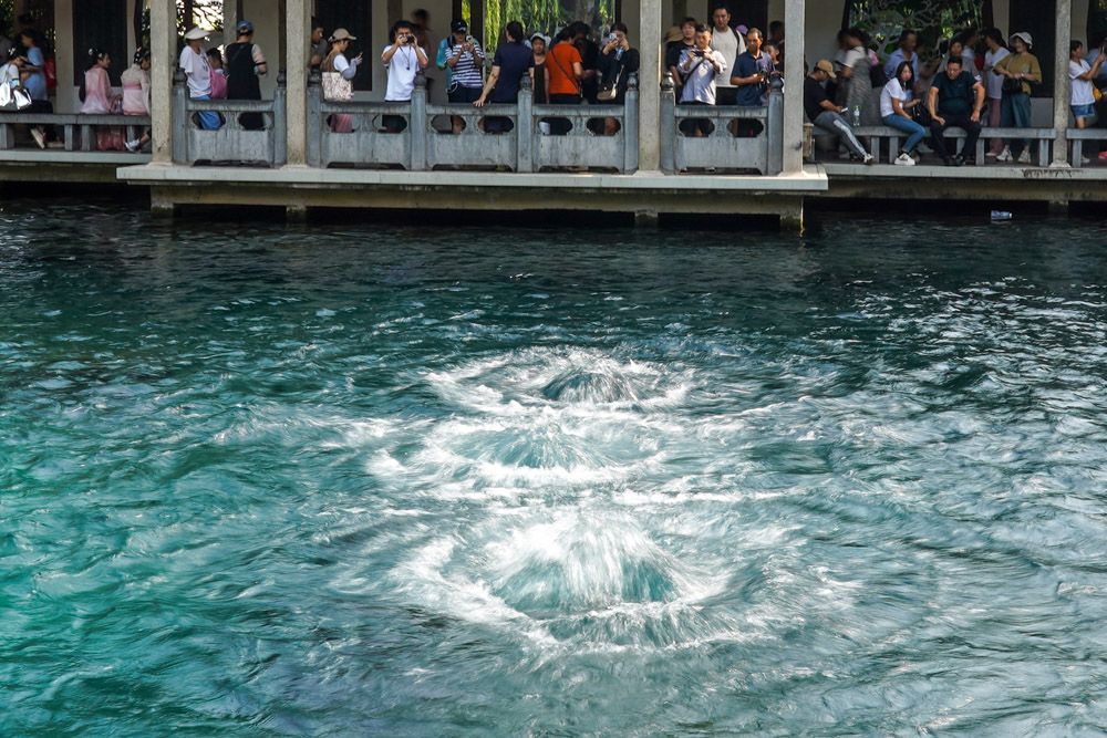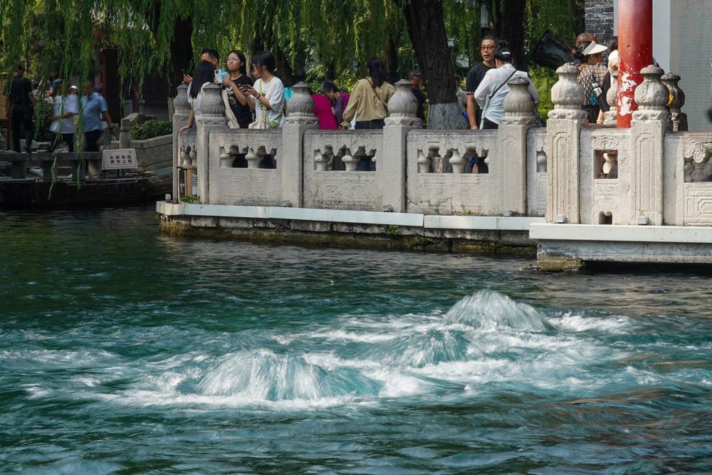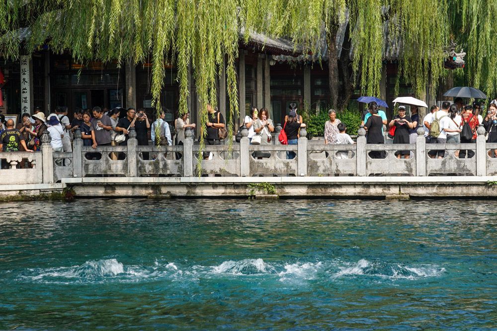9月6日, 游客观赏济南趵突泉“水涌若轮”景观。被誉为“天下第一泉”的济南趵突泉,实现自2003年9月6日复涌以来持续喷涌20年。(图片来源:中新社)